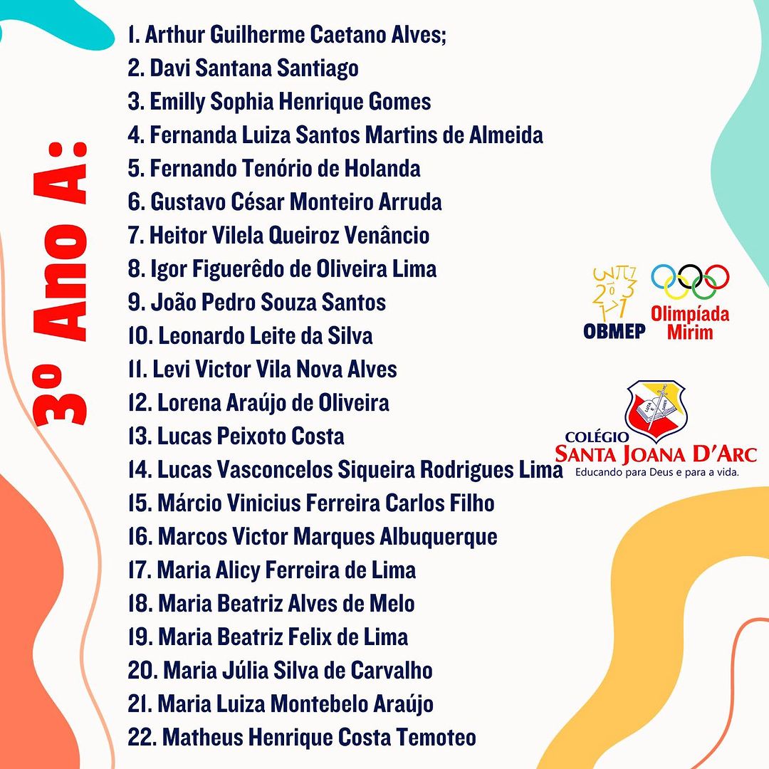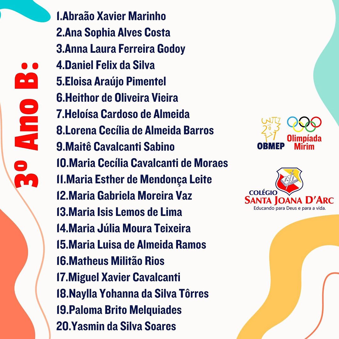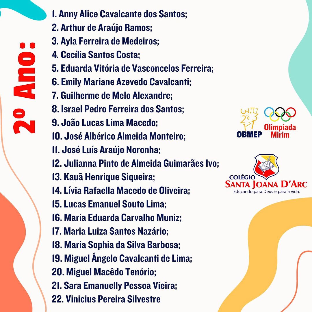 Parabéns aos alunos inscritos para participar das Olimpíadas mirins. Colégio Santa Joana D’Arc há 38 anos construindo um legado de transformações na educação.